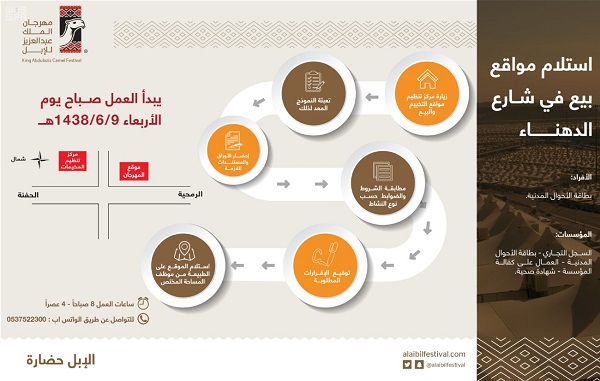 (مكة) – الرياض تبدأ إدارة مهرجان الملك عبدالعزيز للإبل صباح غدٍ تحديد مواقع المخيمات على المشاركين في فعاليات المهرجان ومتنافسي…