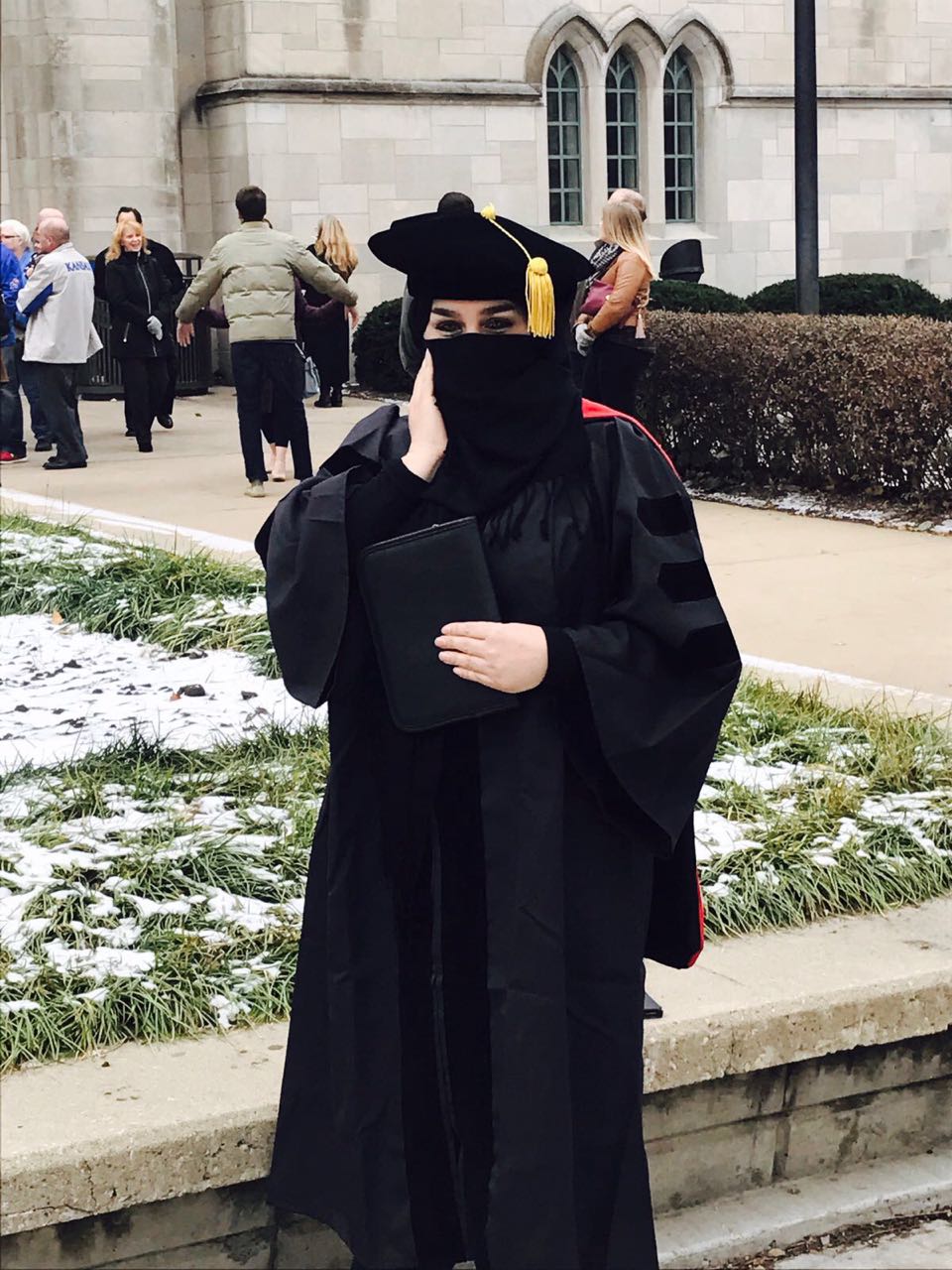 نالت المبتعثة كوثر خلف حامد والكاتبة بقضايا المبتعثين الأمنية والإجتماعية درجة الدكتوراة