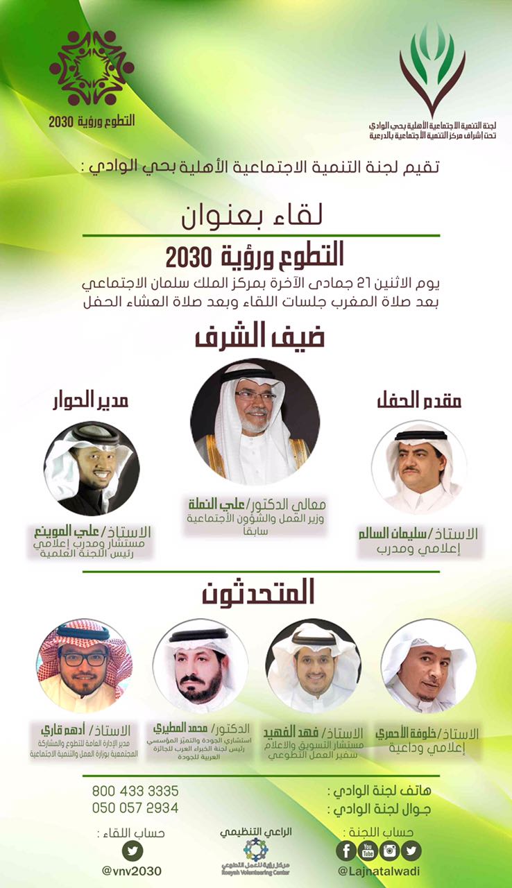لجنة حي الوادي تنظم لقاء ” التطوع ورؤية 2030″