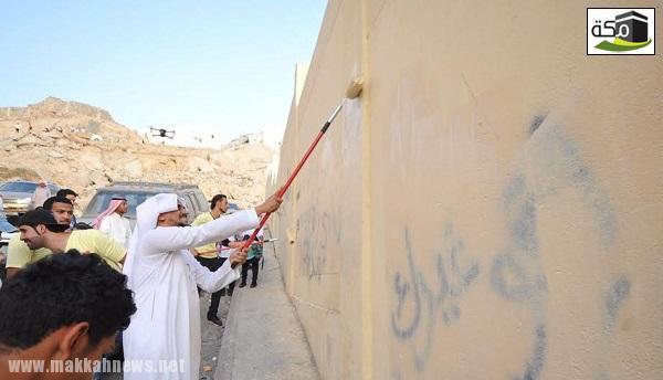 “في خدمة مكة” تنظم حملة لإزالة كتابات الجدران