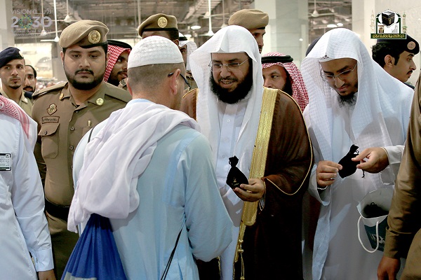 إمام الحرم “الغامدي” يقدم هدايا الوداع لضيوف الرحمن