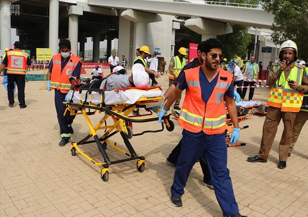 الدفاع المدني ينفذ فرضية للتعامل مع مخاطر تعطل بوابات قطار المشاعر بمزدلفة