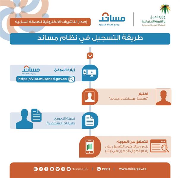 “العمل” : “مساند” اختصر مدة إصدار تأشيرات العمالة المنزلية إلى يوم واحد إلكترونياً