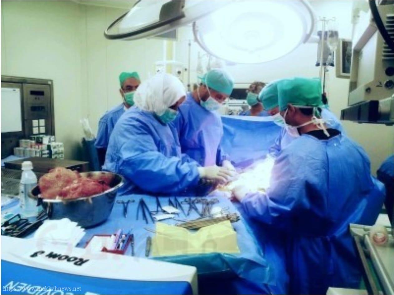 وصفت انها نادرة الحدوث على مستوى العالم .. عملية تستغرق ٢٤ ساعة لانقاذ سيدة اربعينية لاستئصال “ورمين” بطبية مكة