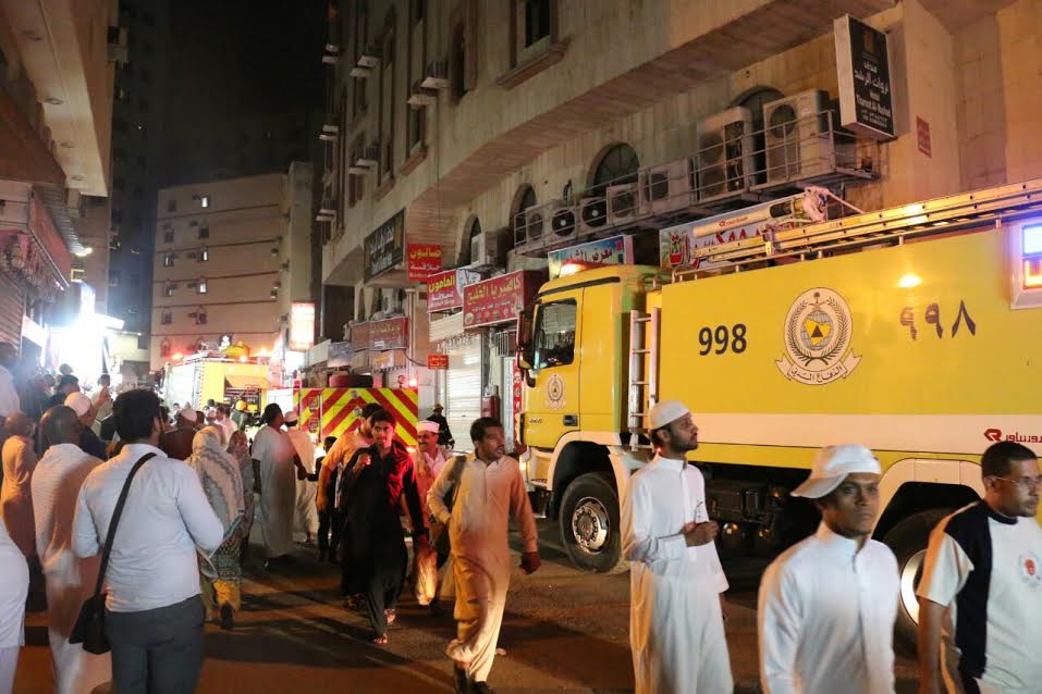 مدني مكة يسيطر على حريق بفندق في حي المسفلة